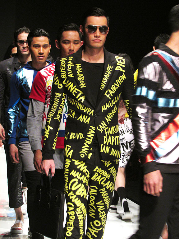 Jeffrey Rogador showcased his JPNY 360 collection last Philippine Fashion Week S/S 2015 with bolder, richer and now-iconic graffiti-styled sportswear(and a couple of blazer suit) pieces defining the great commercial success of his Jeepney collection from the past season and a well-off collaboration with local fashion retail Folded N Hung.
