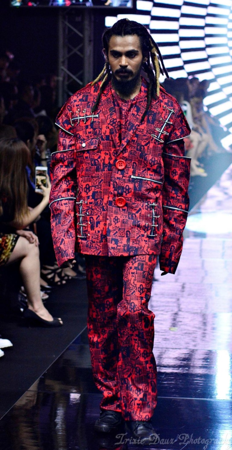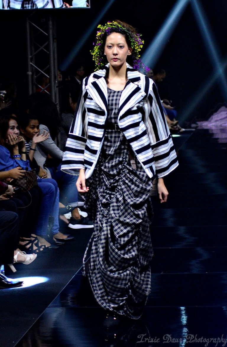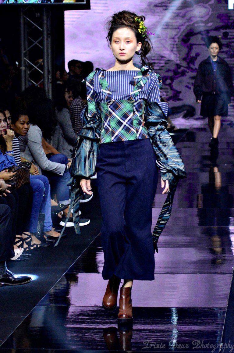 Taking inspiration from Filipino pre-colonial era – plaid prints, classic forms and pop of color blasts this wearable fashion from the past into today. See the runway curtain call here.