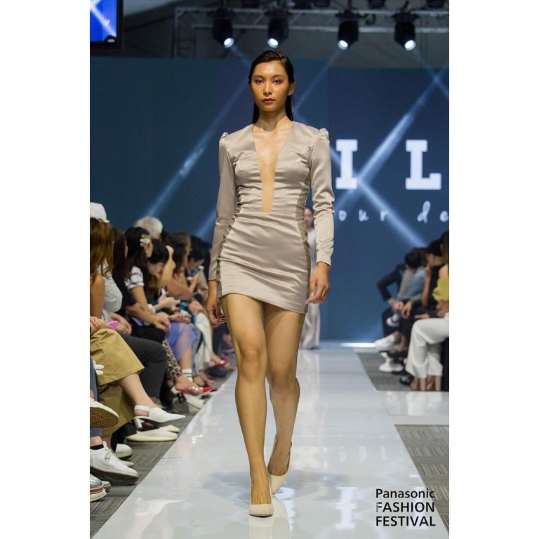 BILLY of Laos unveiled form-fitting dresses in contrasting fabric mixes.