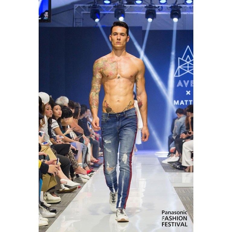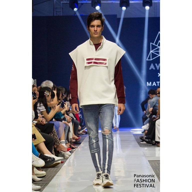 A dream come true denim line collaboration between musician/actor Matteo Guidicelli and fashion designer Avel Bacudio. The ripped blue jeans are paired up with stylish nude and red tops for that smart and sexy look.