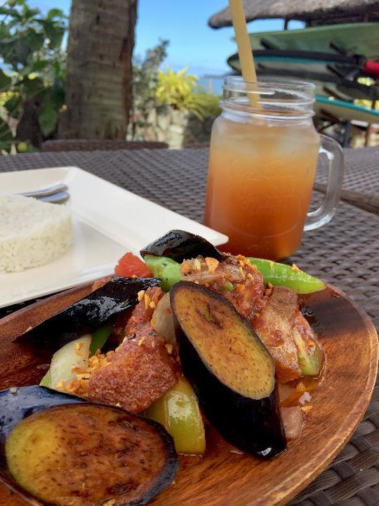 Before I go to the accommodation, I’d like to highlight Nalu Surf Camp’s Snack Bar or Café which pretty much have delicious and for me, affordable dishes for lunch and dinner, in addition to the all-day breakfast they have. I was pleasantly surprised with the taste and they were presented well, that made me decide to don’t go far and look for a place to eat, I was already at the right place to dine for the rest of my stay. I’m not much of foodie, I don’t blog food but because I had an unforgettable delectable experience, here I am, posting food photos and I’m gonna talk about what I had during my stay. The lunch I had was a Fried Chicken rice meal and I ordered Dynamite on the side, the chicken was fried perfectly to golden brown with the meat still tender. For the dinner that night, I ordered Kare-Kare rice meal which is a dry version from usual saucy one we get, and then I also got a watermelon shake. The next day, my lunch was a Binagoongan dish, which is also a dry version of the common one, as the meat is fried along with the vegetables. For my dinner it was my fave Beef Caldereta, loaded with bell pepper, potatoes and carrots. And finally on my last day, for breakfast I got Tocino and egg fried rice meal.