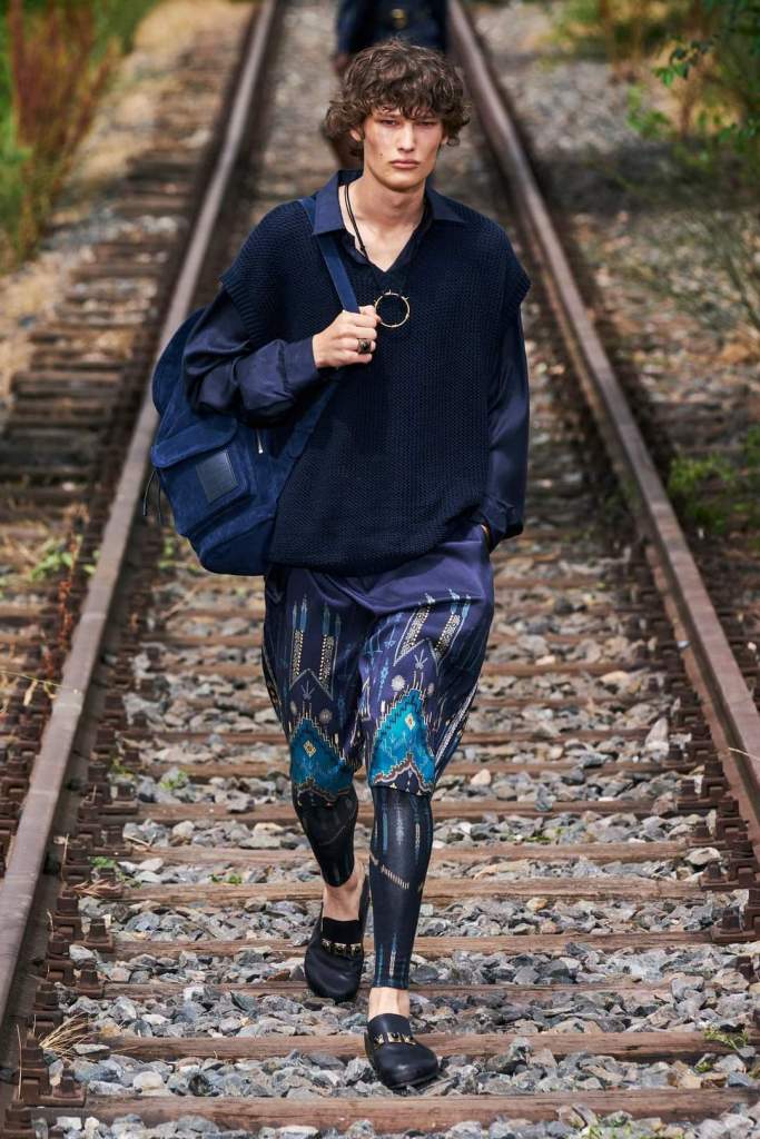 Giving us a road less traveled ease in an all around pallette from vibrant ombre, to dreamy paisley prints, to earth and midnight sky in native prints – ETRO Spring/Summer Menswear 2022 showcased casual fluidity in loose shirts, matching tops and bottoms, and accompanying tote bags. I certainly love the collection’s hue transition and the impeccable style of shorts and tights.