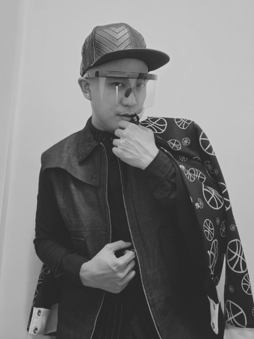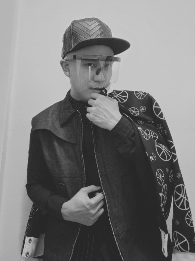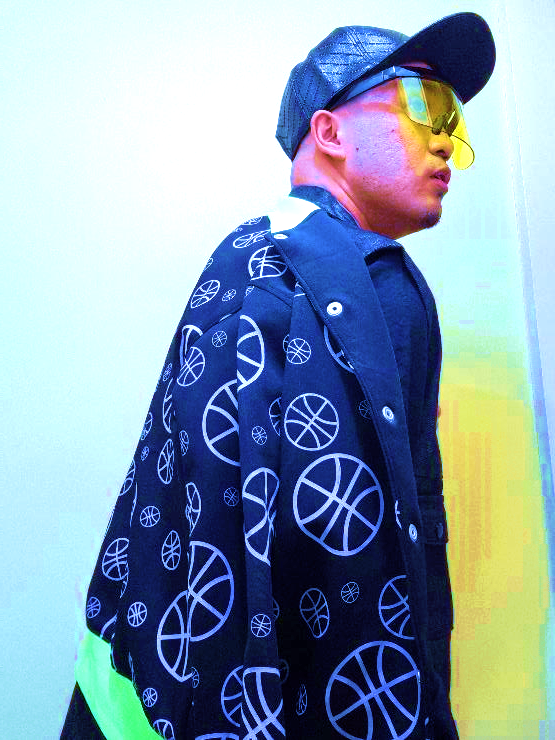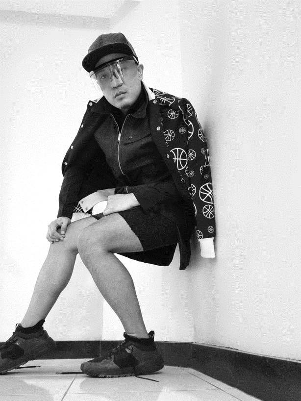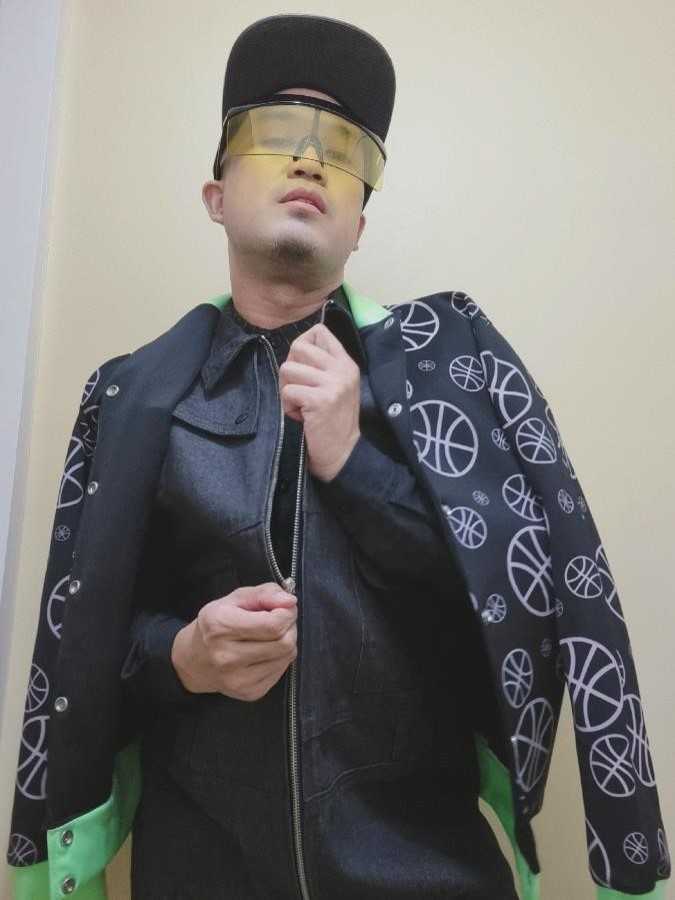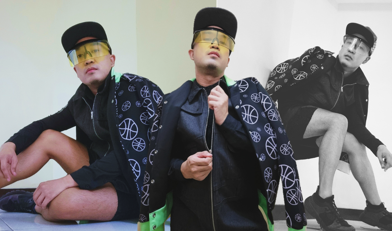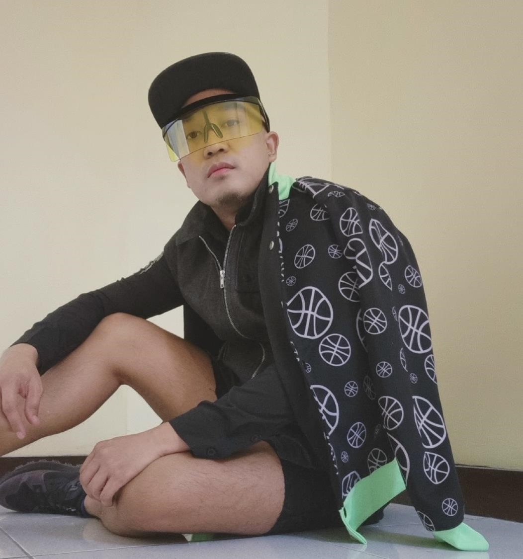 Having an edgy kind of ball time with an interplay of Jeffrey Rogador varsity jacket and Renan Pacson denim vest.